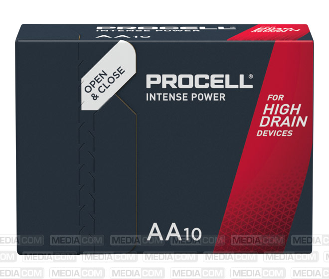 Procell Intense Power Industriebatterien wurden speziell für eine längere Lebensdauer (verglichen mit früheren Alkaline-Industriebatterien der selben Baugröße von Duracell) in professionellen Geräten mit hohem Energieverbrauch oder Leistungsspitzen, wie z.B. Blutdruckmessgeräte, Seifenspender oder Taschenlampen, entwickelt.
