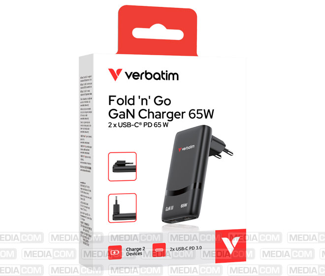 Fold 'n’ Go GaN Charger 65W, schwarz 2x USB-C PD mit max. 65W, Retail
