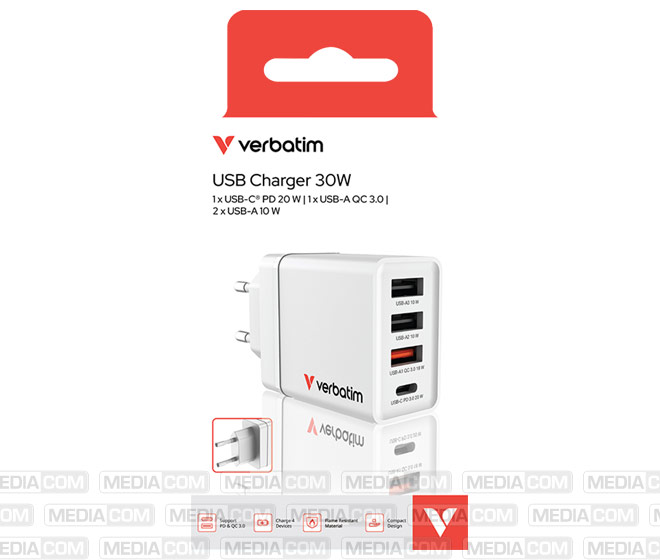 Ladeadapter, CHR-30EU2, 30W, GaN, weiss 2x USB-A, 1x USB-A QC, 1x USB-C PD, Retail