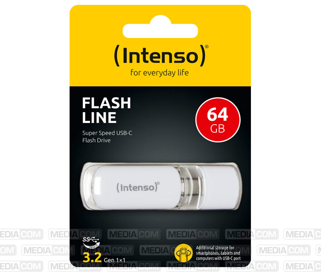 USB 3.2 OTG Stick 64GB, Flash Line, weiss Typ-C, (R) 70MB/s, Retail-Blister