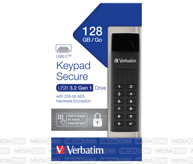 USB 3.2 Stick 128GB, Secure, Keypad, AES-256-Bit Typ-C, (R) 160MB/s, (W) 150MB/s, Retail