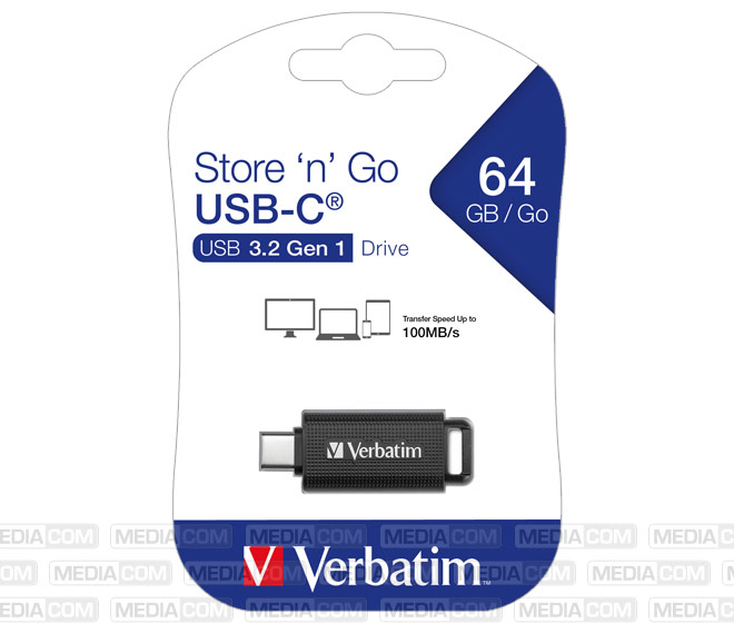 Mit dem Verbatim Store 'n' Go USB-C-Stick können Sie schnell und einfach Dateien zwischen USB-C-kompatiblen Geräten speichern und übertragen. Der Stick lässt sich mühelos an USB-Typ-C-Laptops, -Telefone und -Tablets anschließen, sodass Sie sich keine Gedanken über einen Adapter machen müssen.