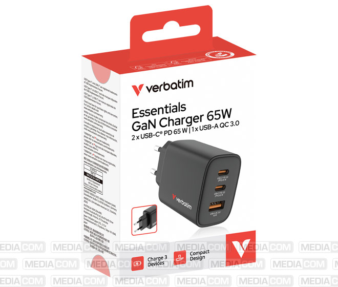 Ladeadapter Essentials, 65W, schwarz 1x USB-A QC, 2x USB-C PD max. 65W, Retail