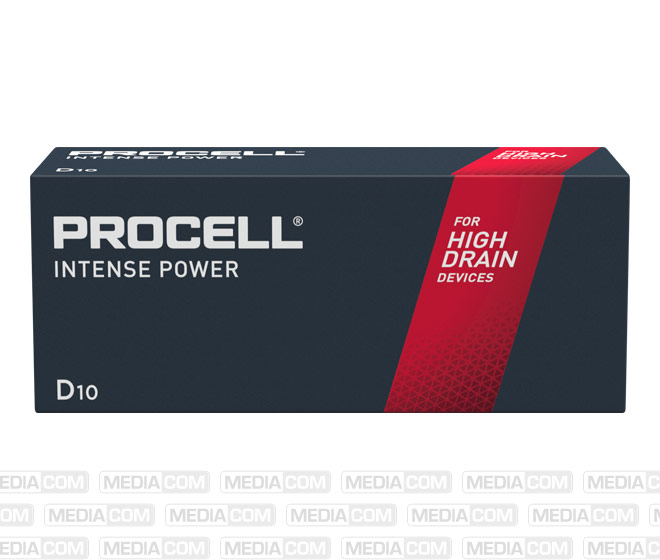 Procell Intense Power Industriebatterien wurden speziell für eine längere Lebensdauer (verglichen mit früheren Alkaline-Industriebatterien der selben Baugröße von Duracell) in professionellen Geräten mit hohem Energieverbrauch oder Leistungsspitzen, wie z.B. Blutdruckmessgeräte, Seifenspender oder Taschenlampen, entwickelt.