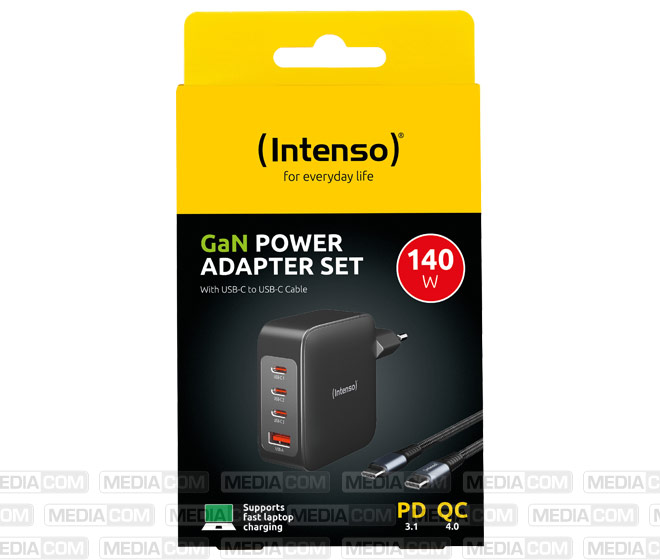 Ladeadapter, GaN, W140A3C, 140W, schwarz inkl. Kabel USB-C, 2m, schwarz, Retail