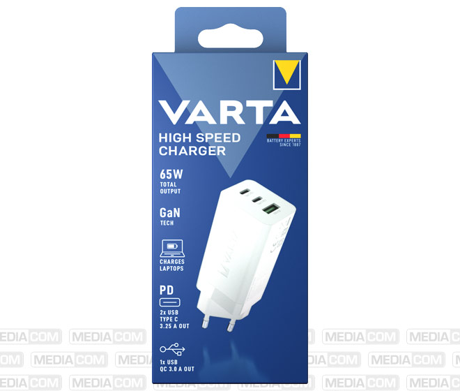 Ladeadapter, High Speed Charger, GaN, 65W, weiss 1x USB-A QC, 2x USB-C PD, Retail