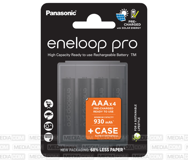 Panasonic eneloop pro Akkus eignen sich vor allem für Geräte mit hohem Energiebedarf wie Kameras, Blitzgeräte, Tastature/Mäuse, Haushaltsgeräte etc. Sie sind mit Solarenergie vorgeladen und daher direkt nach dem Kauf einsatzbereit. Sie können bis zu 500 Mal aufgeladen werden und funktionieren auch bei extrem niedrigen Temperaturen von bis zu -20°C zuverlässig. Dank hochmoderner Technologie zeichnen sie sich durch eine besonders geringe Selbstentladung aus. So verfügen eneloop pro Akkus auch nach einem Jahr Lagerzeit noch über 85 Prozent ihrer Kapazität. Inklusive Akkubox zur Aufbewahrung.