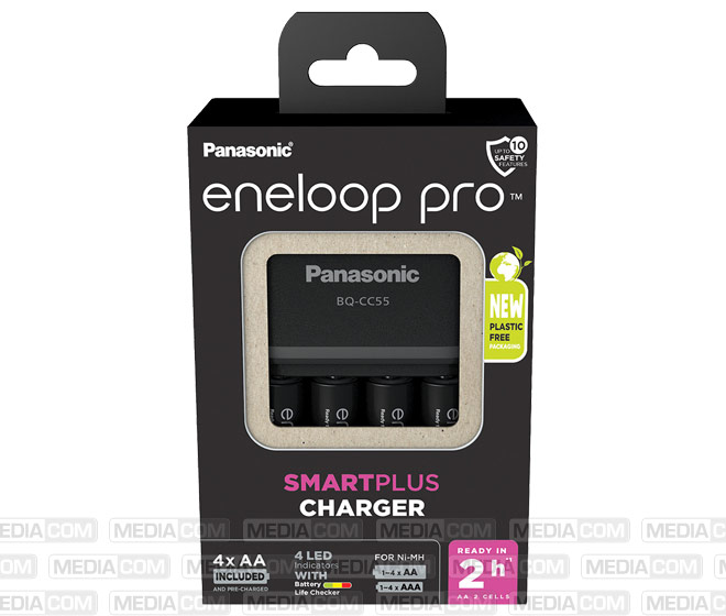 Das kompakte Ladegerät kann bis zu vier AA/AAA Akkus gleichzeitig laden. Mithilfe der Smart Charge Funktion, die automatisch die Spannung und Temperatur der eingesetzten Akkus misst, kann die Zeit bis zur vollständigen Aufladung verkürzt werden. Vier LEDs geben stets individuell über den aktuellen Ladestatus Auskunft, während Funktionen wie die Minus-Delta-U-Abschaltung einen sicheren Betrieb gewährleisten. Im Lieferumfang sind vier Eneloop Pro AA Akkus mit 2.500mAh enthalten.