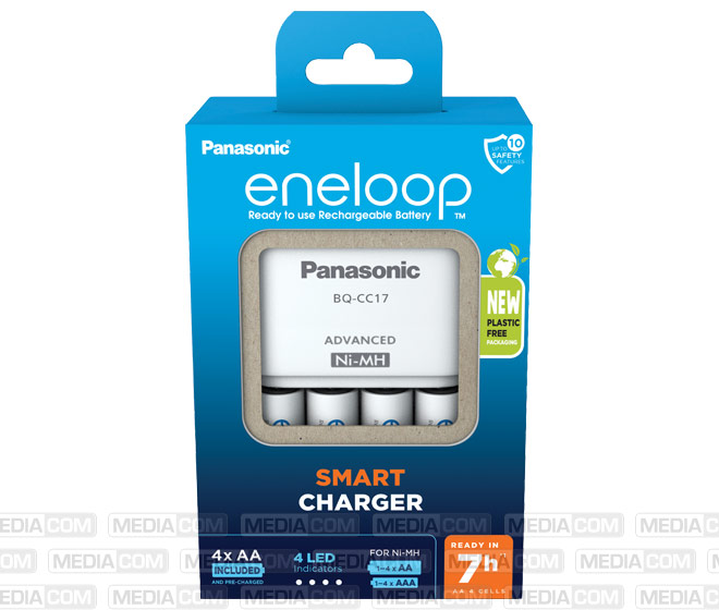 Das kompakte Ladegerät kann bis zu vier AA/AAA Akkus gleichzeitig laden. Dank Timer-gesteuerter Einzelabschaltung ist der Ladevorgang besonders sicher. Vier LEDs geben stets individuell über den aktuellen Ladestatus Auskunft. Im Lieferumfang sind vier Eneloop AA Akkus mit 2000mAh enthalten.