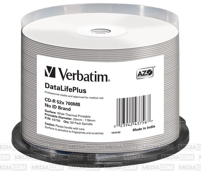 CD-R 80min/700MB/52x Cakebox (50 Disc) Thermo Full Size Printable Surface, White, Professional