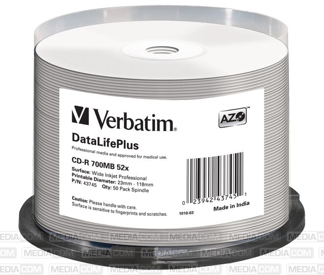 CD-R 80min/700MB/52x Cakebox (50 Disc) Inkjet Full Size Printable Surface, White, Professional