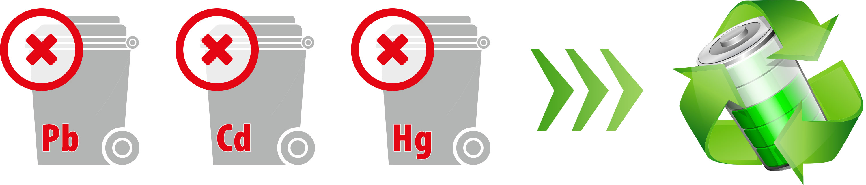 The battery law (BattG) obliges every consumer to return all used and exhausted batteries to one of the official collection points. The return of old batteries and accumulators is thereby in principle free of charge. Any other disposal (e.g. via household waste) is prohibited by law!