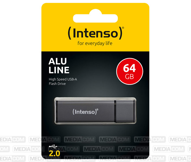 USB 2.0 Stick 64GB, Alu Line, anthrazit (R) 28MB/s, (W) 6.5MB/s, Retail-Blister