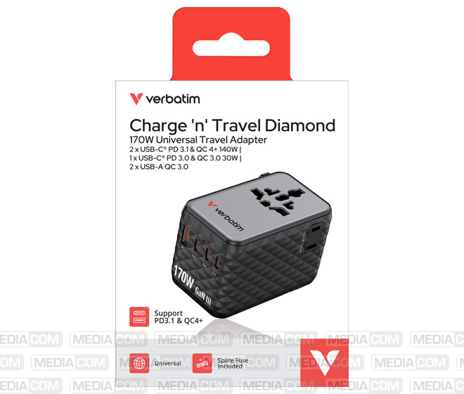 Ladeadapter, Charge'n'Travel, GaN III, 170W 1x USB-A QC, 3x USB-C (PD), 100-250V, Retail