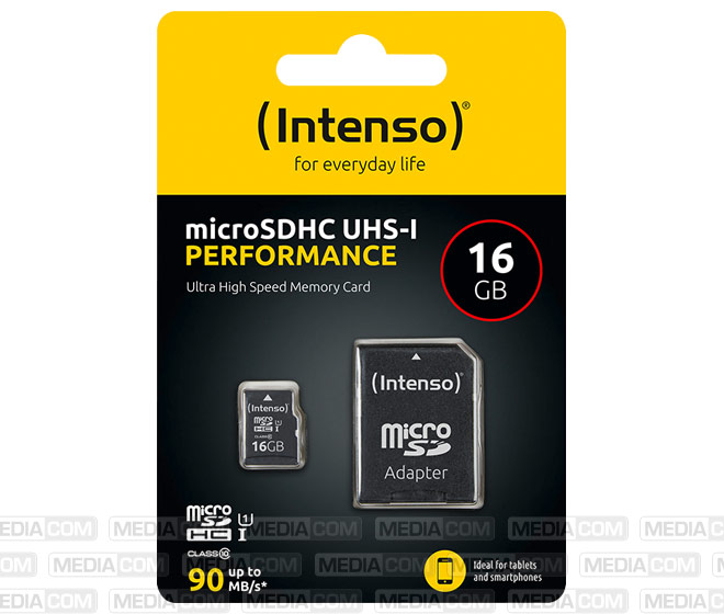 microSDHC Card 16GB, Performance, Class 10, U1 (R) 90MB/s, (W) 10MB/s, SD-Adapter, Retail-Blister
