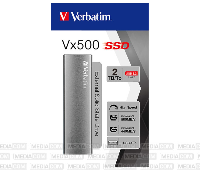 Die externe SSD der Vx500 Serie von Verbatim ist ein utra-mobiler Datenspeicher für extrem schnelle Datenübertragungen, der mit seinem Aluminiumgehäuse sowie einem geringen Gewicht punkten kann. Die kompakte, stoßfeste und absolut geräuschlose Speicherlösung überzeugt zudem durch elegantes, robustes Design. Da die Stromversorgung über den USB-Anschluss erfolgt, wird kein Netzteil benötigt. Dank der Abwärtskompatibilität kann die SSD auch an älteren USB-Anschlüssen genutzt werden. Im Lieferumfang ist ein USB Typ-A auf Typ-C Kabel enthalten sowie eine Software zum Planen und Durchführen von Backups, so dass Daten stets bestens geschützt sind (Software nur mit Windows kompatibel).